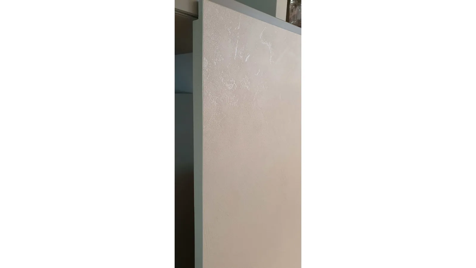 La finitura presente nella composizione è Materico Cemento Cava con elementi in metallo e binari in finitura Laccato Opaco colore Grigio Piacenza