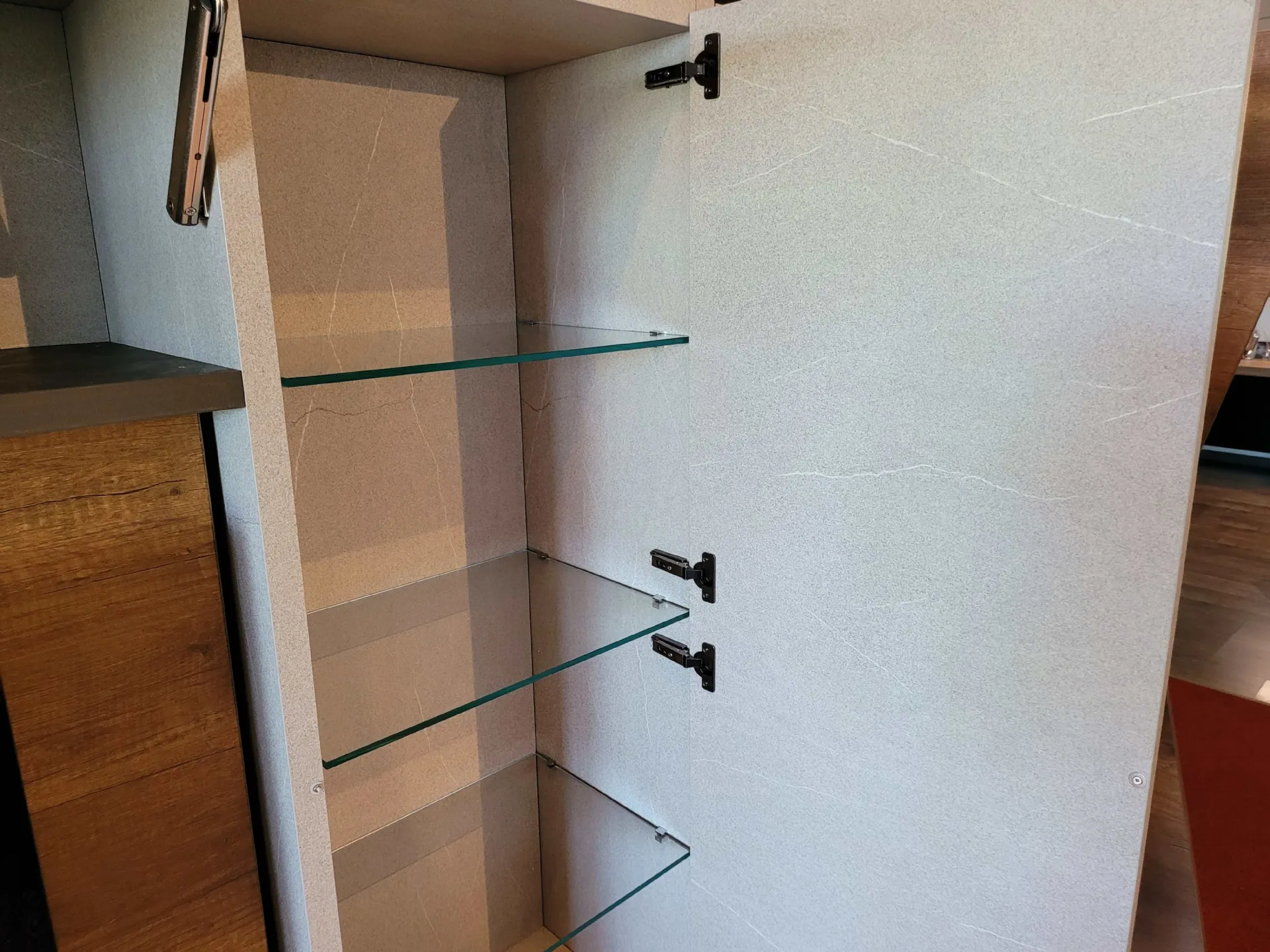 Tutti i ripiani interni presenti all’interno di questa composizione sono in vetro temperato trasparente di grande qualità.