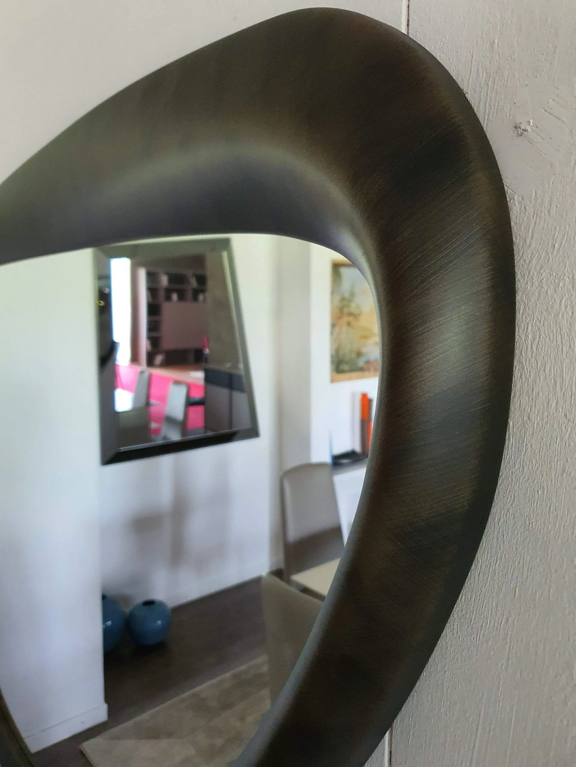 Specchiera sospesa mod.SOHO con cornice in poliuretano laccato BRONZO SETA X18 p.c. misura cm L.132,5xH.92