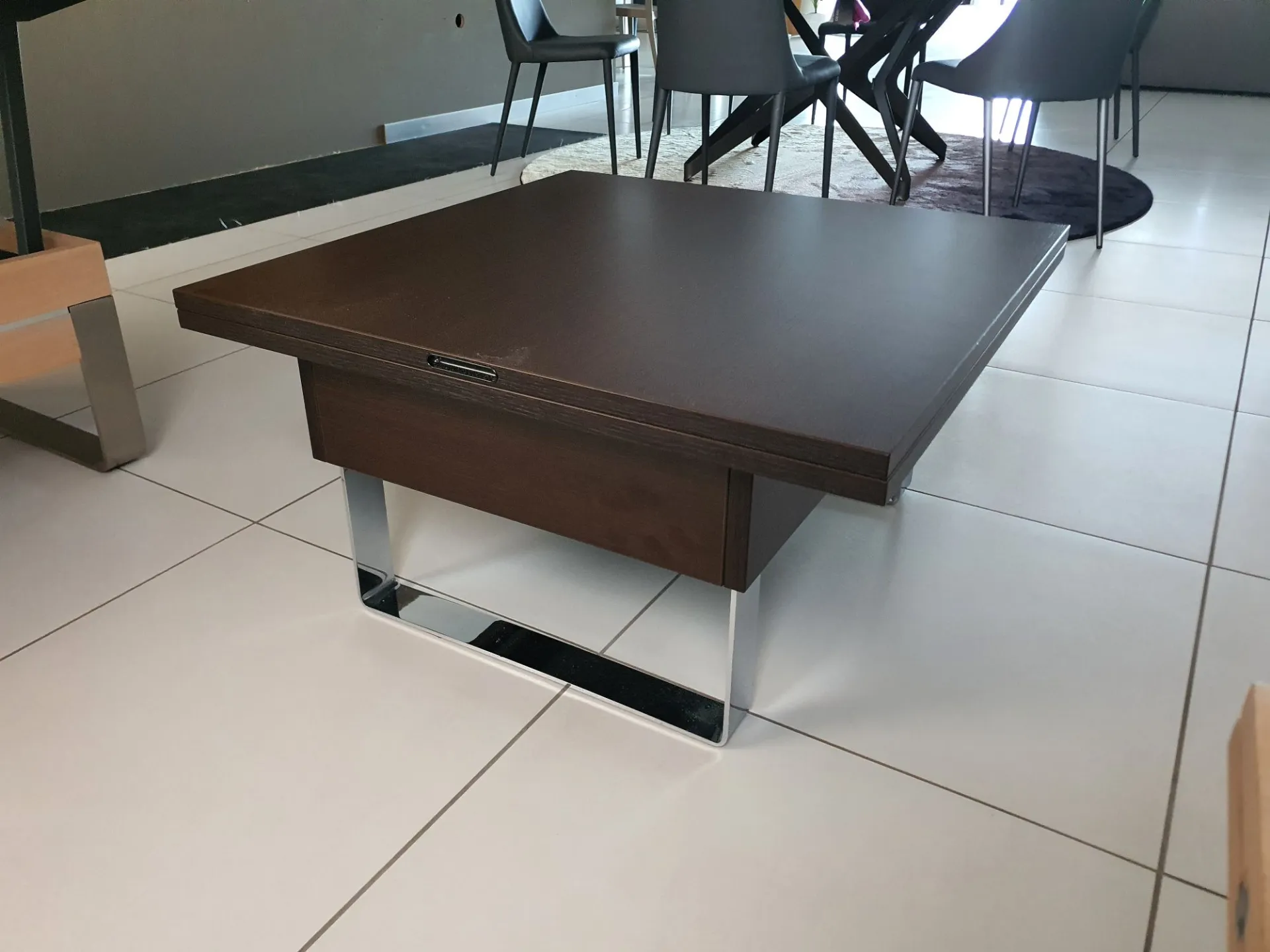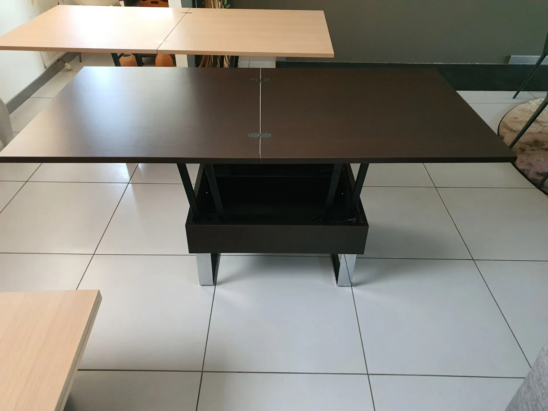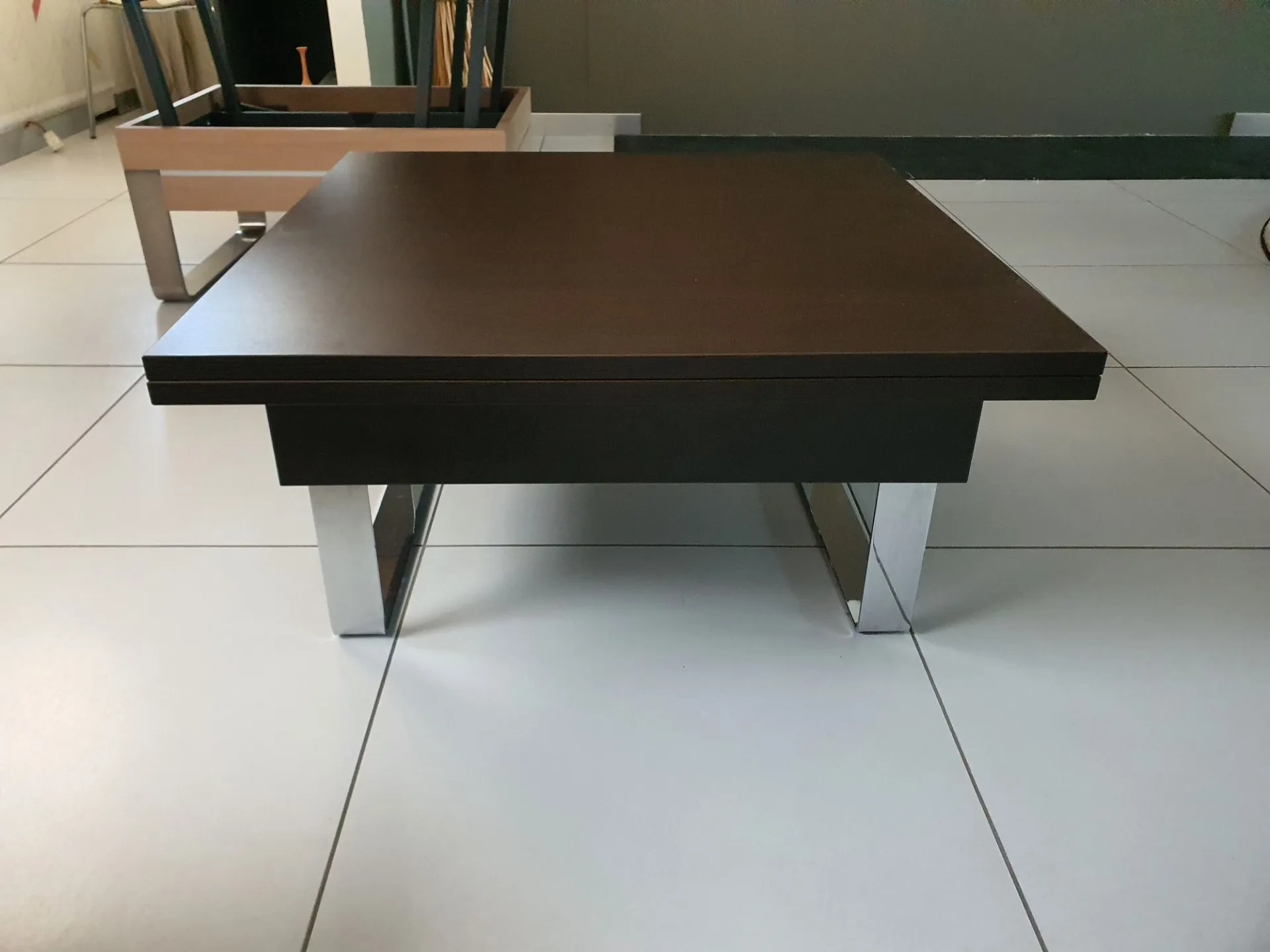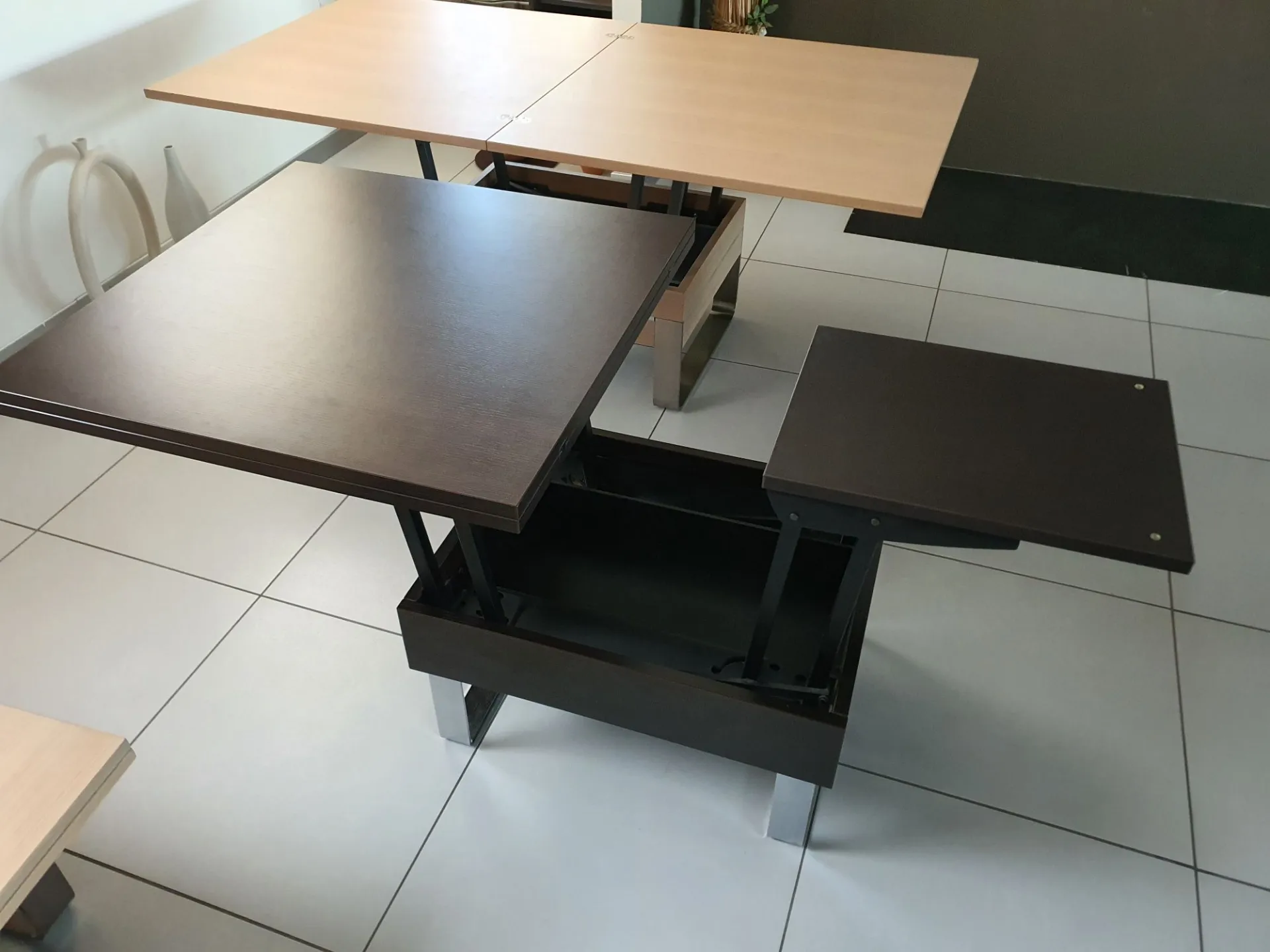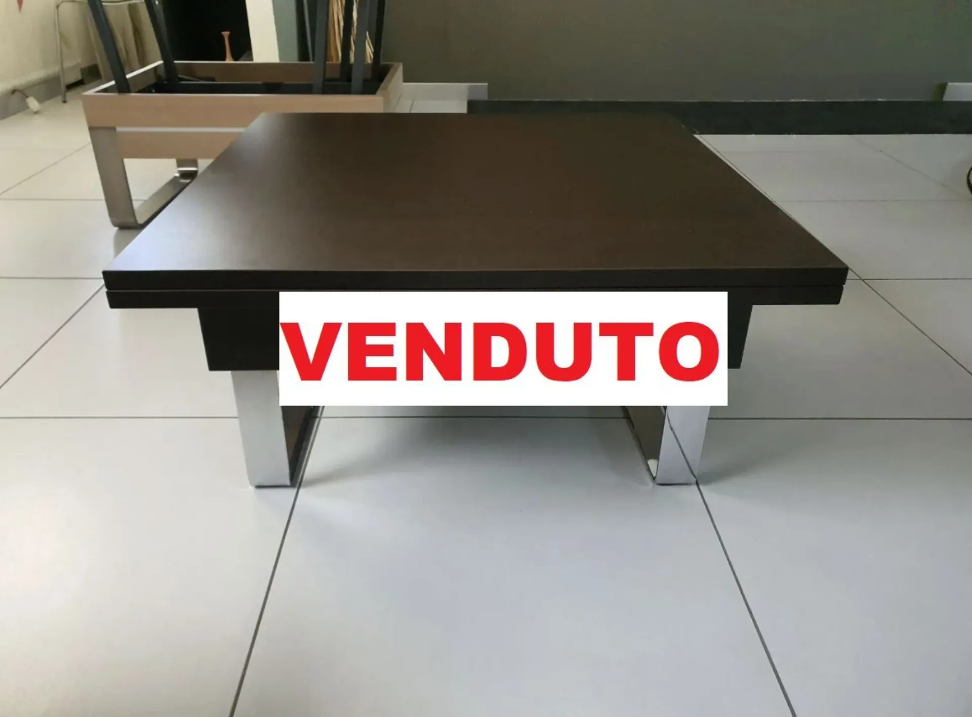 Tavolino trasformabile mod.JOGE che da tavolino da salotto diventa un comodo piano su cui pranzare o da utilizzare come postazione PC quando si sta comodi sul divano