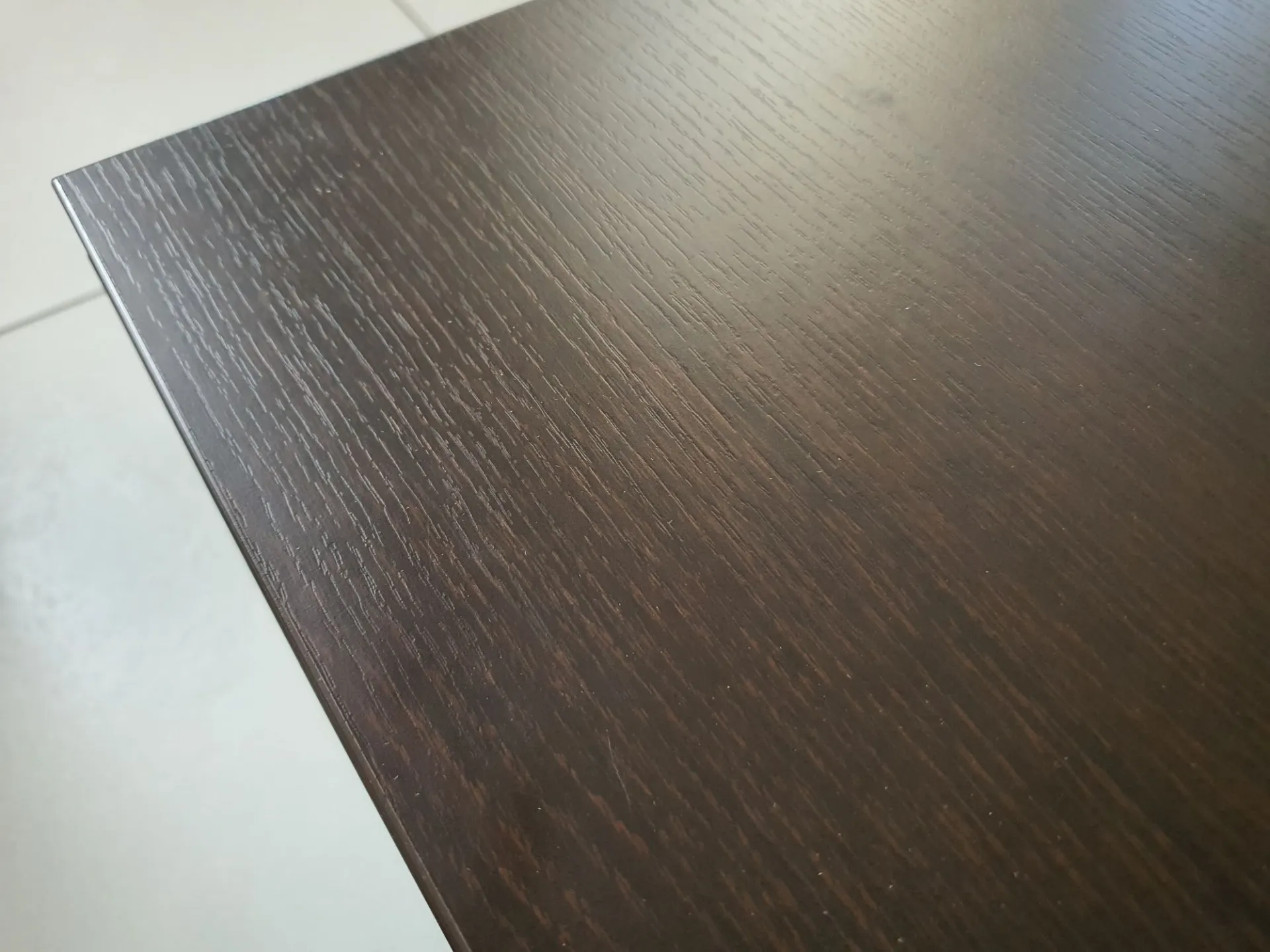 Il piano è in legno ROVERE MORO con basamento in metallo nickel satinato