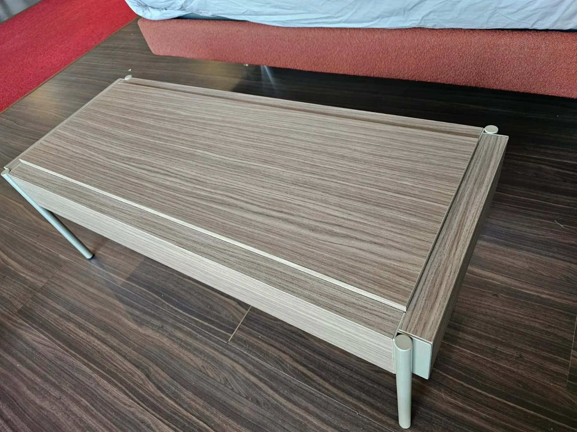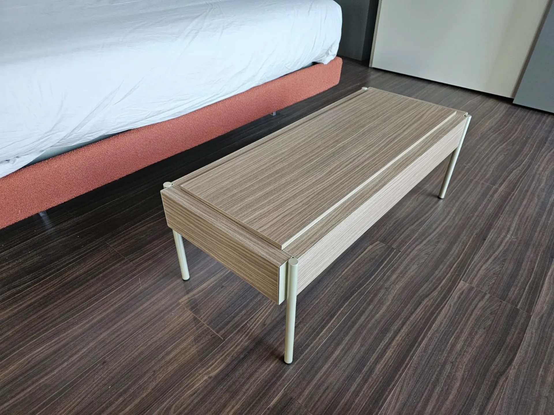 tavolino Adok usato come panca per poggiare valigie. Esso presenta: