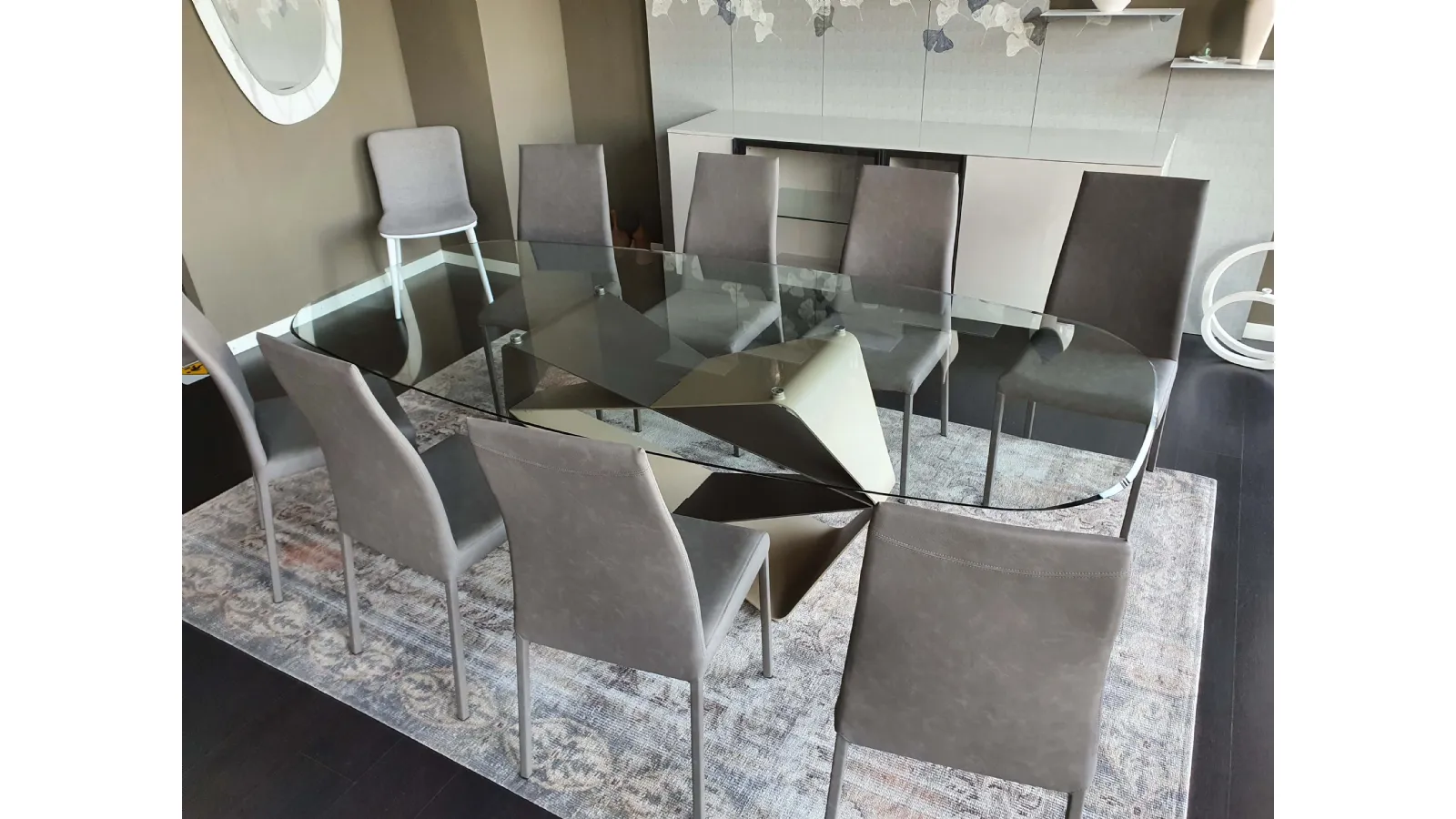 Possibilità di variare forma e dimensioni del piano a piacimento ed è possibile avere il tavolo GEM con piano in vetro senza il bordo diamantato.. RICHIEDI IL PREVENTIVO!