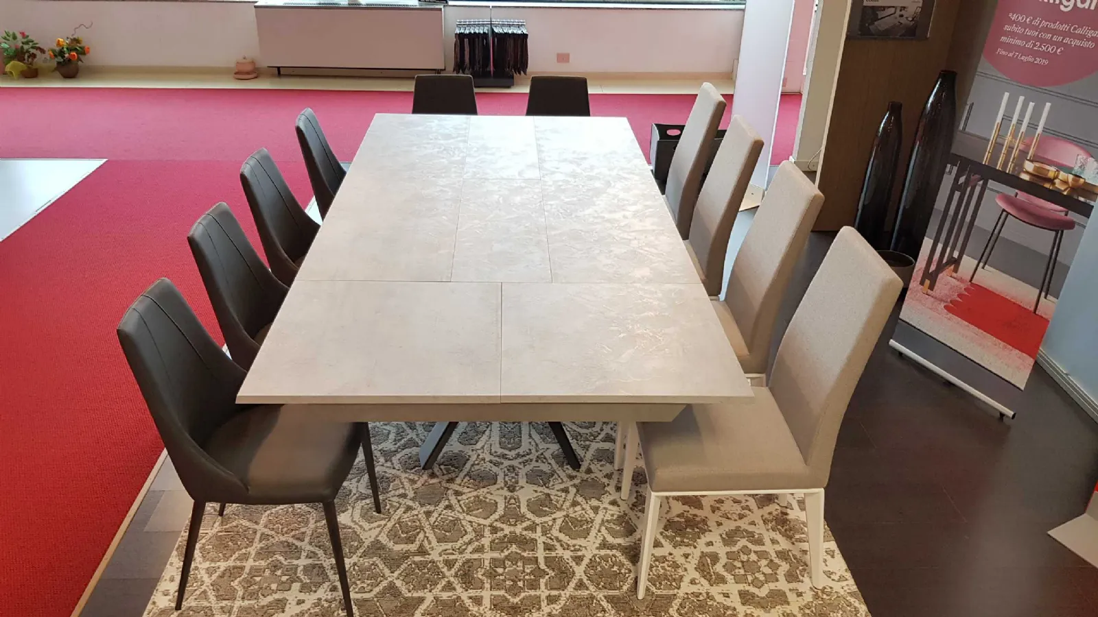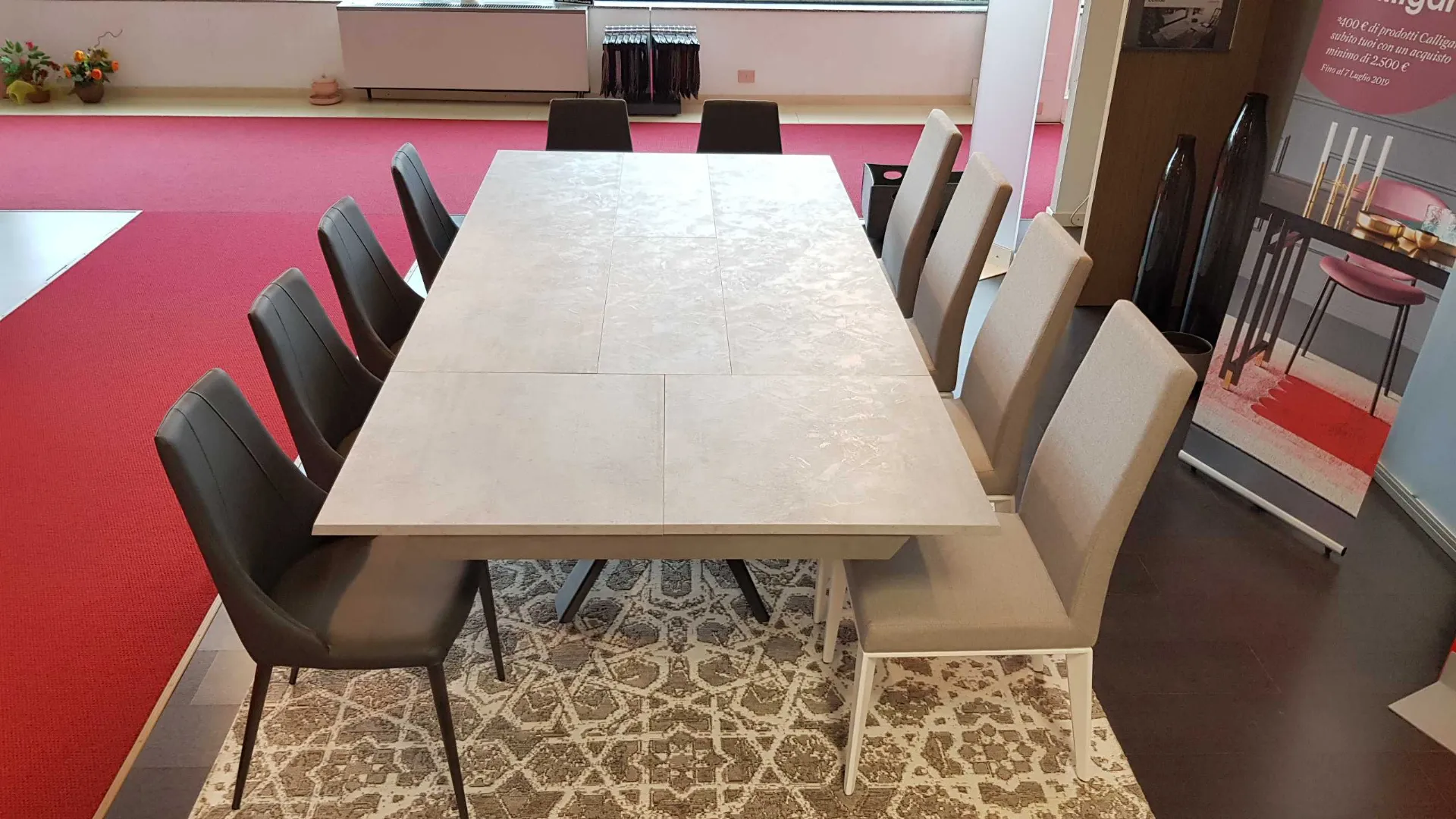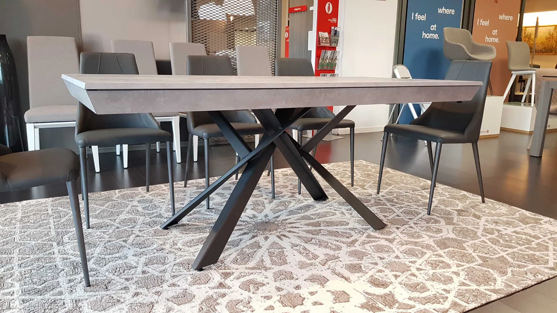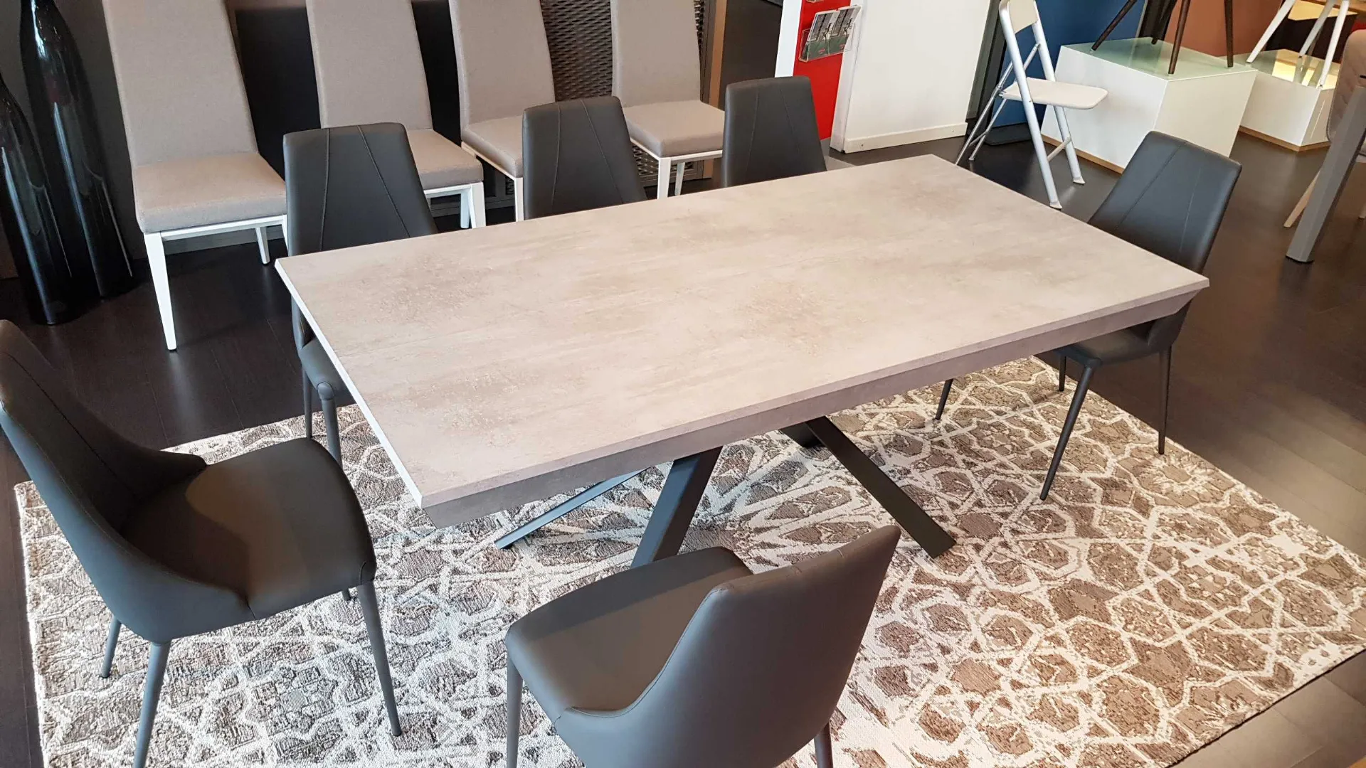 Finalmente è arrivato !!!! Il tavolo che si allunga in due direzioni e consente di aumentare a piacimento i posti a sedere grazie ad un meccanismo interamente in alluminio, con scorrimento molto fluido e robusto. Grazie alle due tipologie di allunghe interne è possibile decidere al momento quanto e come allungarlo in funzione delle proprie esigenze 1° step - estraggo solo l'allunga centrale se ho bisogno di più spazio in profondità per eventuali centri tavola, decorazioni varie o per le pietanze e per avere n.2 posti a sedere a capotavola (misura aperto cm. 180x120prof. con n.10 posti a sedere) 2° step - estraggo solo l'allunga di testa se ho bisogno di aggiungere posti a sedere mantenendo n.1 posto a sedere a capotavola (misura aperto cm. 244x90prof. con n.10 posti a sedere) 3° step - estraggo sia l'allunga centrale sia l'allunga di testa per ottenere il massimo spazio disponibile ed il maggior numero di posti a sedere possibile (misura aperto cm. 240x120prof. con n.12 posti a sedere) Il piano è in finitura ecolegno Beton Cemento ed è disponibile anche nelle varianti : ecolegno vecchio antico, pietra ed ecolegno canaletto. Il basamento centrale consente un comodo e libero posizionamento delle sedie, è in metallo finitura grafite ma è disponibile anche nella variante bronzo La misura da chiuso è di cm. 180x90 e permette di avere n.8 posti comodi La misura da aperto in entrambe le direzioni è di cm. 240x120 e permette di avere n.12 posti comodi L'allunga opzionale per avere il 2° step di allungamento è a parte e viene fornita in tinta con il piano
