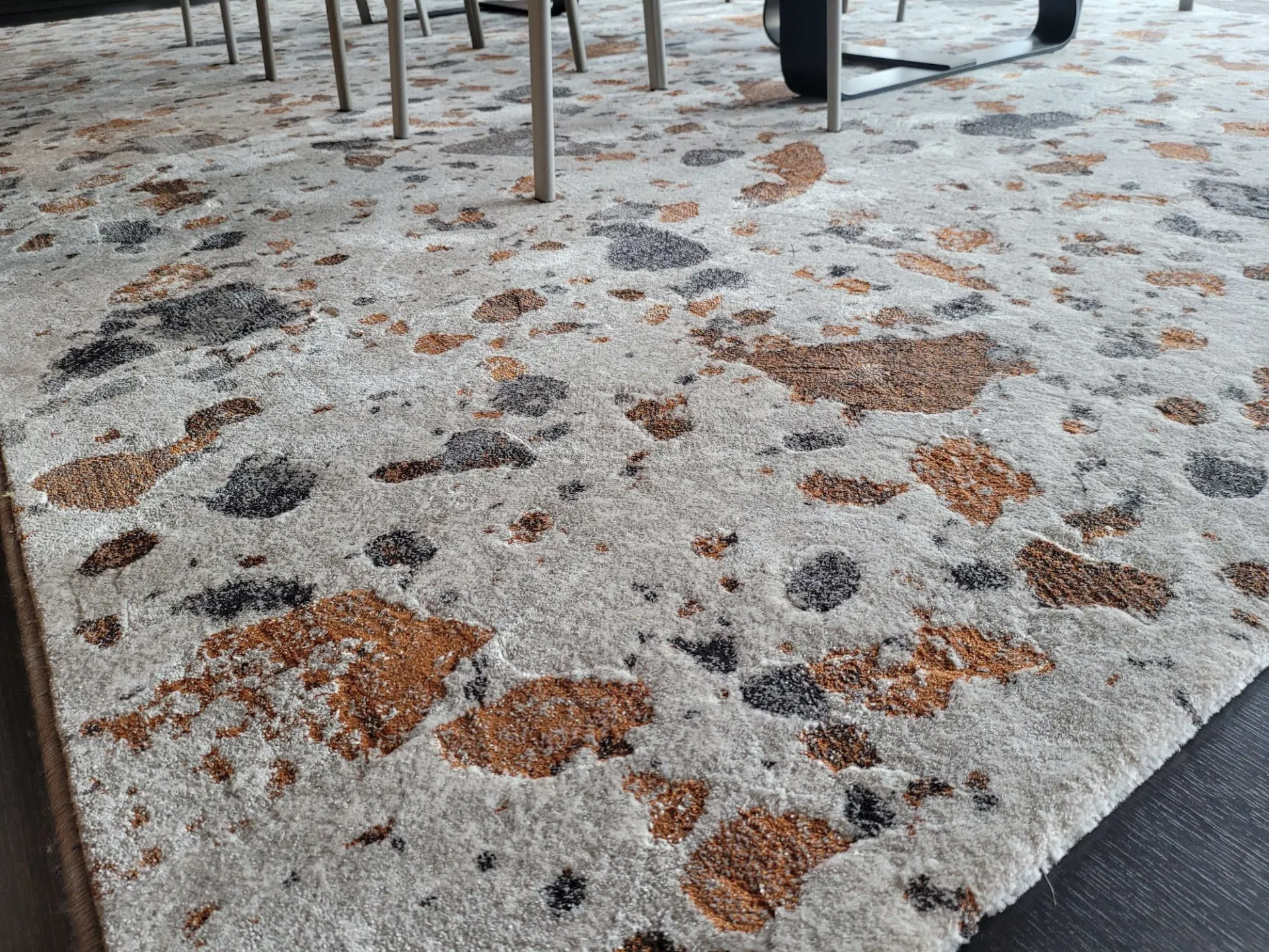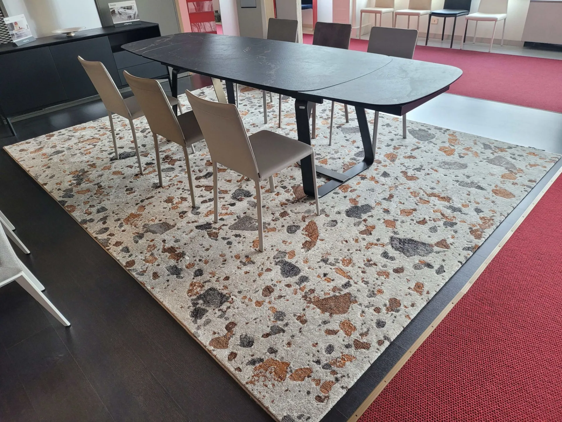 Bellissimo tappeto che si ispira alla storica pavimentazione del terrazzo veneziano e ne che riprende la texture, dove la base beige è impreziosita da un mixage di “tessere” di varie misure e colori che creano lo stesso sorprendente gioco cromatico del pavimento seminato, rendendolo l'elemento distintivo dell'abitazione TERRAZZO è realizzato a macchina con una lavorazione super resistente che da l'effetto "fatto a mano" La sua misura è di cm 280x390