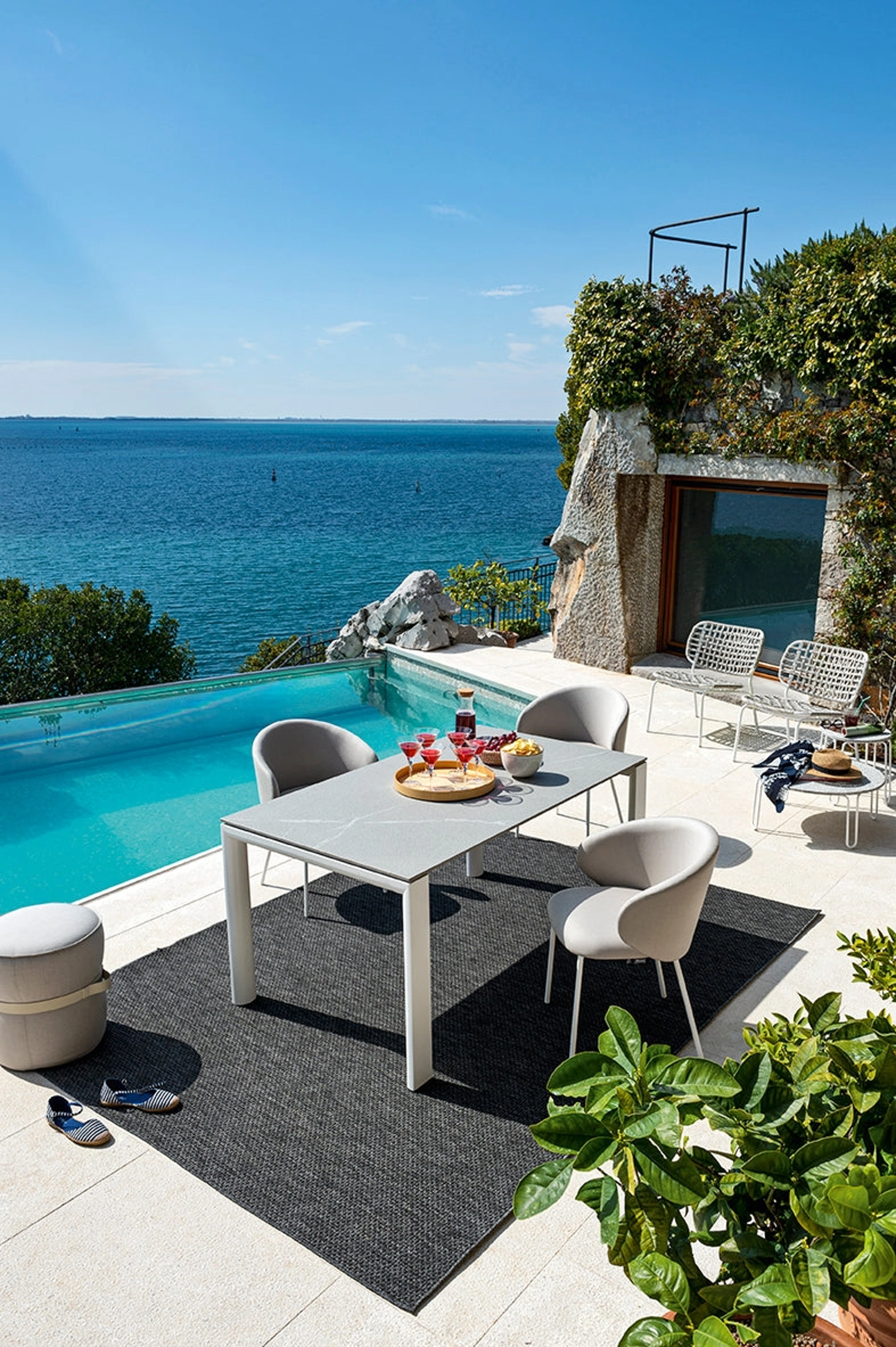 Tavolo rettangolare Dorian di Connubia Outdoor: fa parte della ricca collezione di arredi per lo spazio all'aperto del marchio, garanzia di qualità ed eccellenza nel settore. Chi ha un giardino sa che è una fortuna poterne godere nella stagione estiva, facendo due chiacchiere con familiari e amici o godendosi il paesaggio che ci circonda. Il noto marchio propone tavoli da giardino in ceramica capaci di garantire la totale contentezza dei clienti, sia per estetica che per funzionalità. In estate i giardini divengono quasi altri ambienti di casa, da attrezzare con stile: gli arredi occorre che siano belli e resistenti a sole e pioggia. Dai forma al tuo outdoor con l’Arredo Giardino di grande valore estetico che proponiamo nel nostro showroom: sarà facile assicurarti una serena quotidianità.