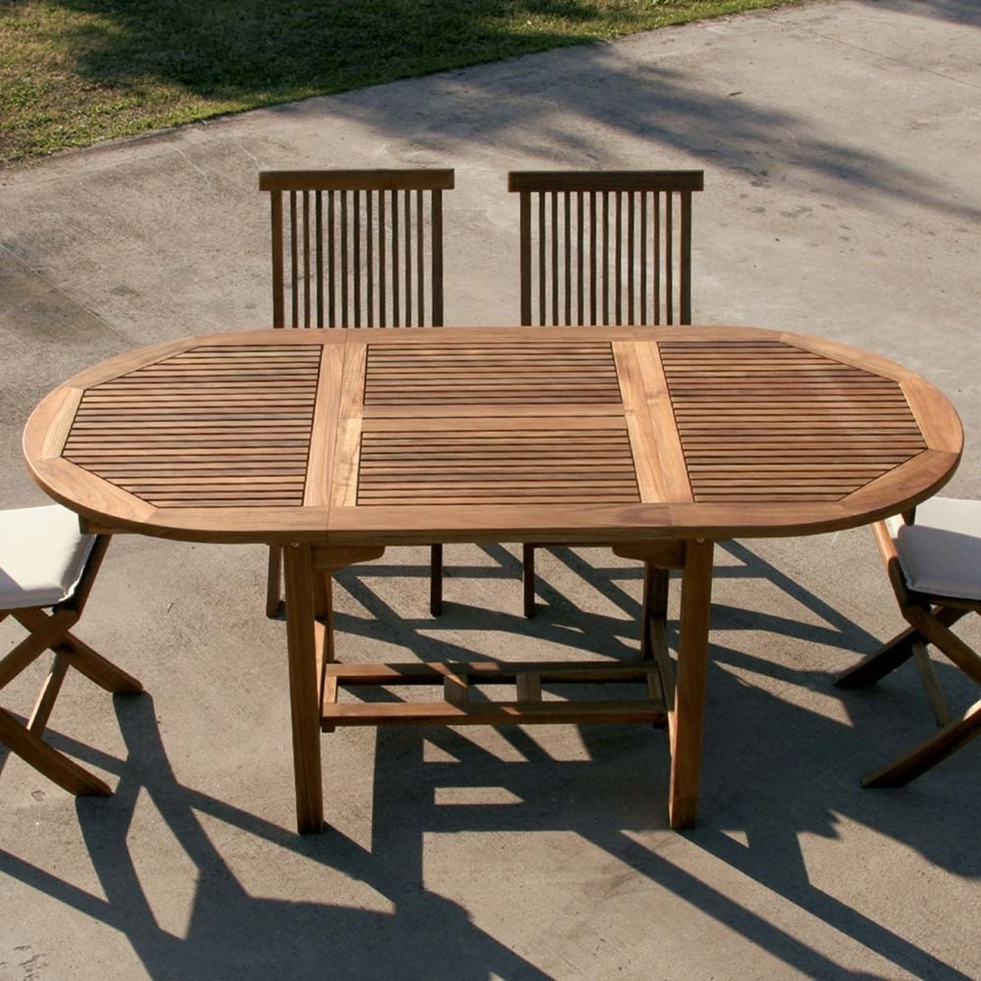 | Materiali: | Massello di teak indonesiano con finitura olio naturale (piano e struttura) |