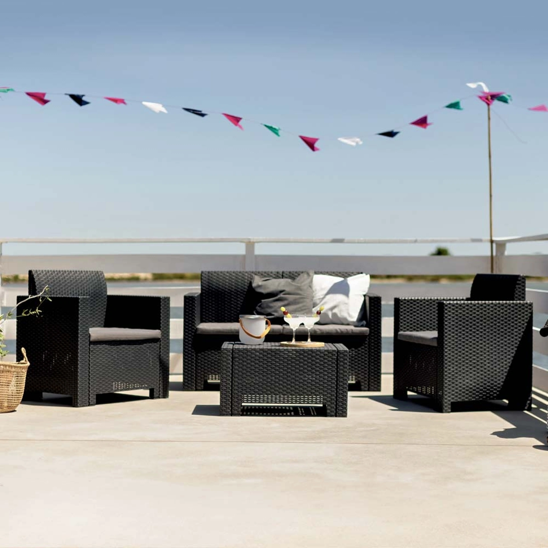 Scopri i nostri mobili e divani da giardino: il modello Set Miami in plastica mostrato in foto ti attende