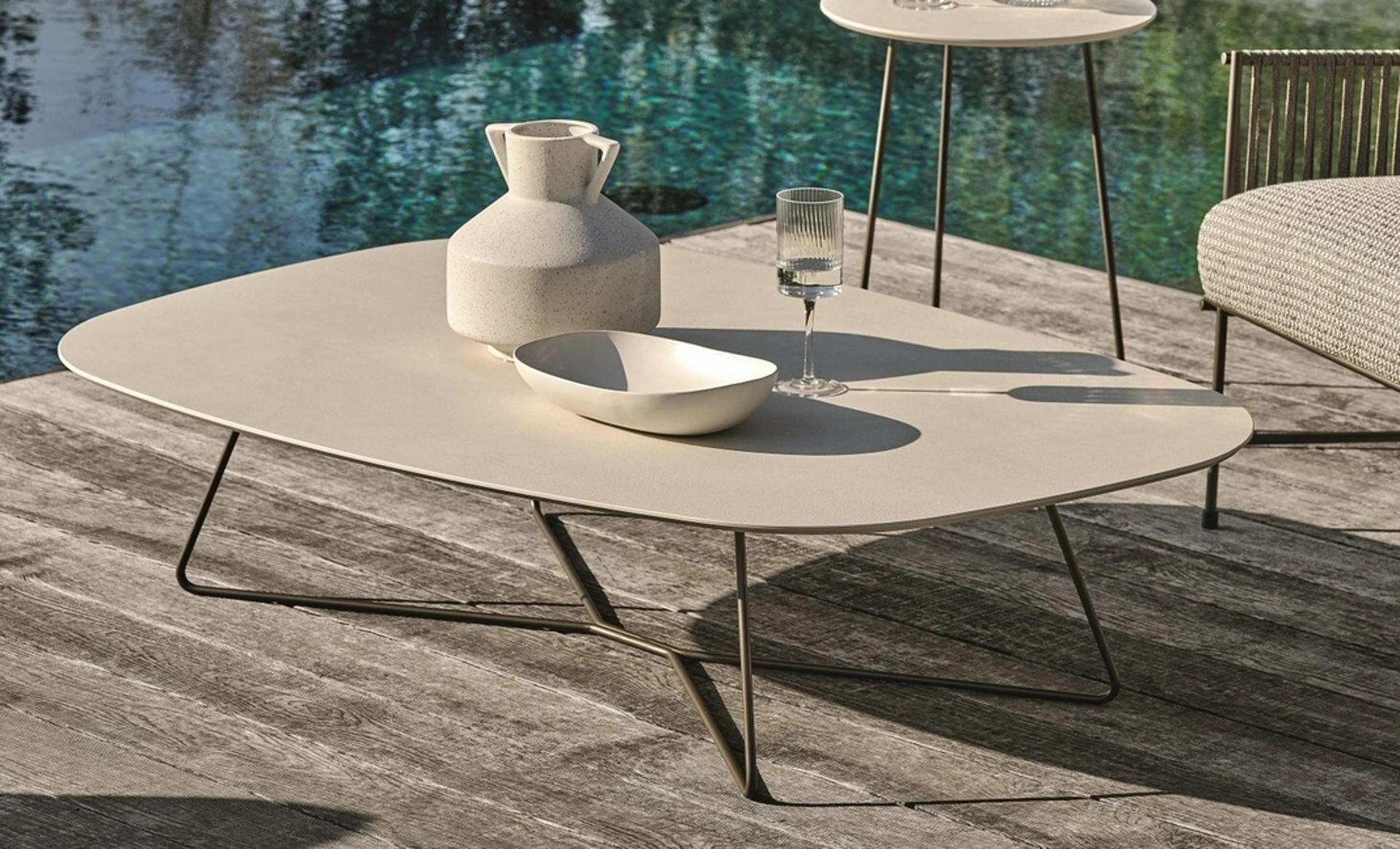 Scopri i nostri arredi e tavolini da giardino: il modello Tavolino Kevin in gres visibile in foto ti attende