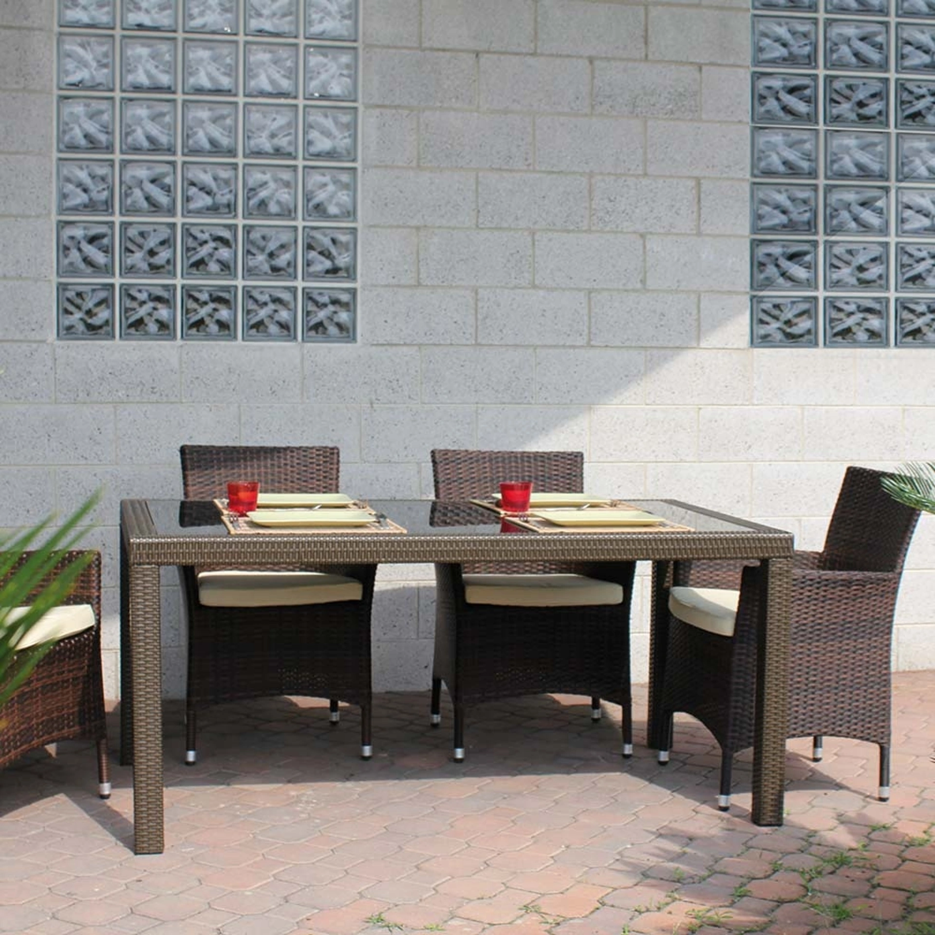 Scopri i nostri mobili e tavoli da giardino: il modello Wicker Table in vetro visibile in foto ti attende