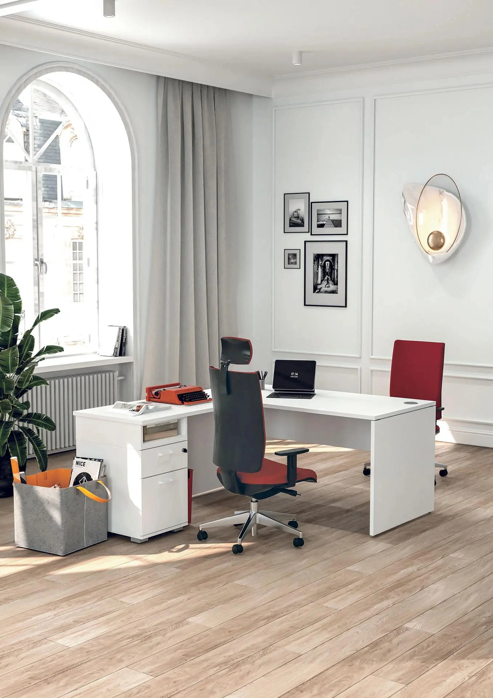 Scopri la nostra linea di scrivanie direzionali e Arredo Ufficio in laminato di MobilOfficeFurniture, come il modello Krin Scrivania Direzionale