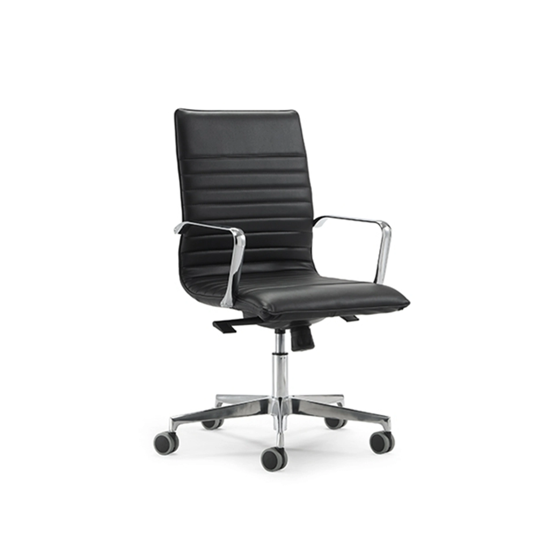 La sedia operativa GENIUS-P, firmata Sedie Brianza, incarna l'eccellenza funzionale e stilistica per l'ambiente ufficio. Dotata di un robusto basamento girevole in alluminio lucido, garantisce stabilità e mobilità. La seduta, finemente imbottita e rivestita in ecopelle di alta qualità, disponibile in tonalità classiche come nero, tortora e beige, assicura un comfort ergonomico prolungato e una facile manutenzione. Questo modello rappresenta una soluzione versatile che coniuga estetica raffinata e prestazioni elevate, ideale per ambienti professionali che non rinunciano al design e alla durabilità. L'impiego di materiali selezionati e una progettazione attenta alle esigenze operative ne fanno un elemento distintivo per ogni spazio lavorativo moderno.