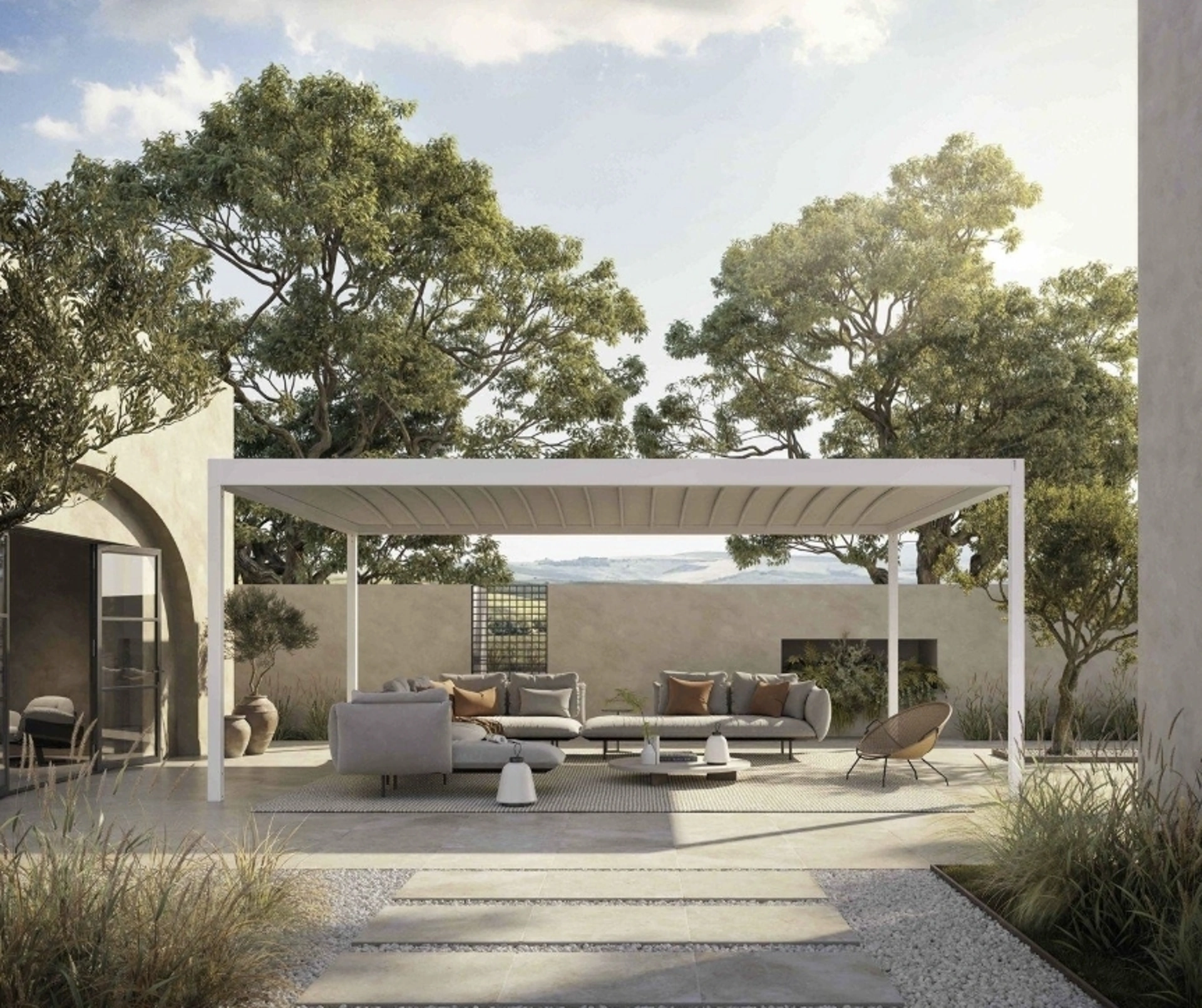 Chi possiede un giardino sa che è una fortuna poterne godere tutto l'anno, conversando con amici e parenti o godendosi il paesaggio che ci circonda. I giardini e i terrazzi diventano quasi altri locali di casa, da arredare con soluzioni durevoli e resistenti, per poterne godere tutto l'anno. Corradi propone Pergole a muro o autoportanti capaci di garantire sempre la soddisfazione dei clienti, per estetica e praticità. LaPergola a isola Butterfly Alba di Corradi fa parte della ricca offerta di soluzioni tecniche per l'outdoor del marchio, garanzia di qualità ed eccellenza nel campo.
