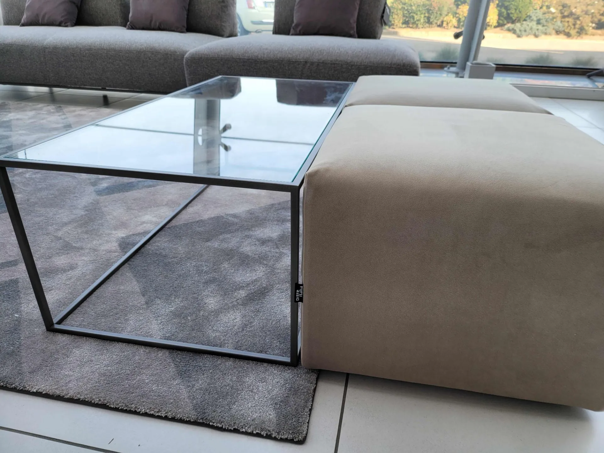 Si può comporre a piacere la composizione desiderata, accostando il pouf con piano rivestimento in tessuto tipo vellutino colore beige