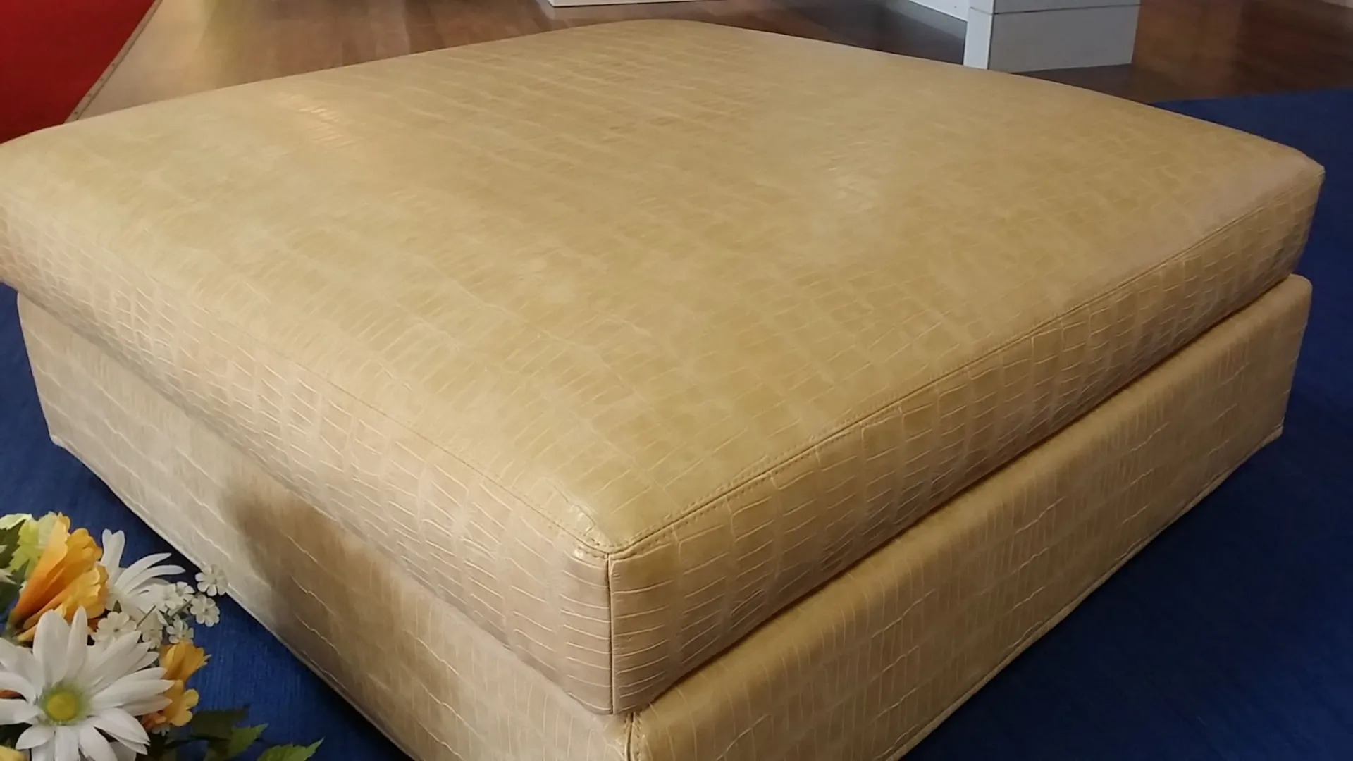 Pouff mod. Village CON RIVESTIMENTO IN PELLE ART. CABALA, quadrato . misura l.95xprof.95